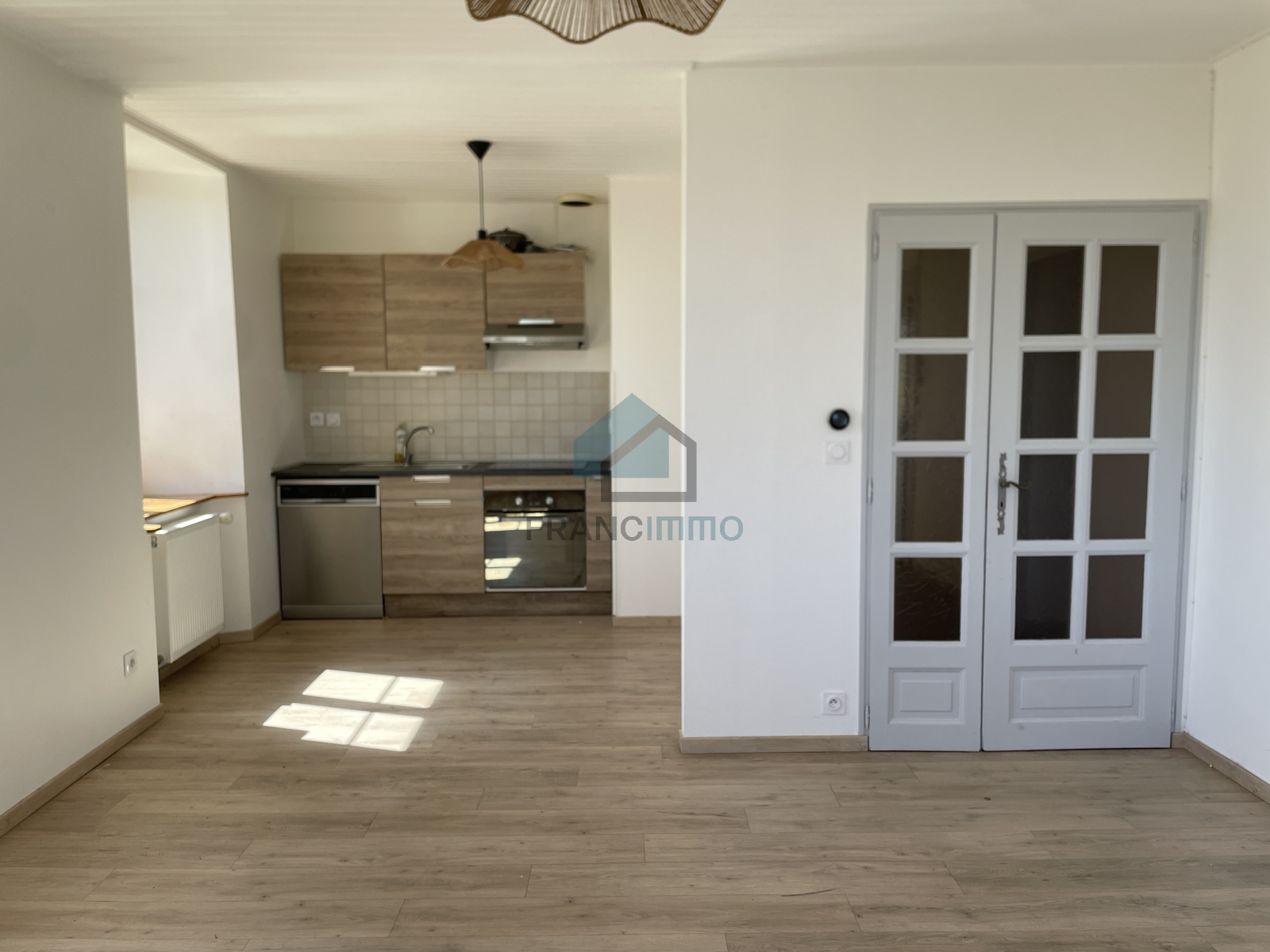 Au 2ème étage, appartement comprenant : entrée, dégagement, cuisine ouverte sur séjour, deux chambres, salle d'eau et WC.