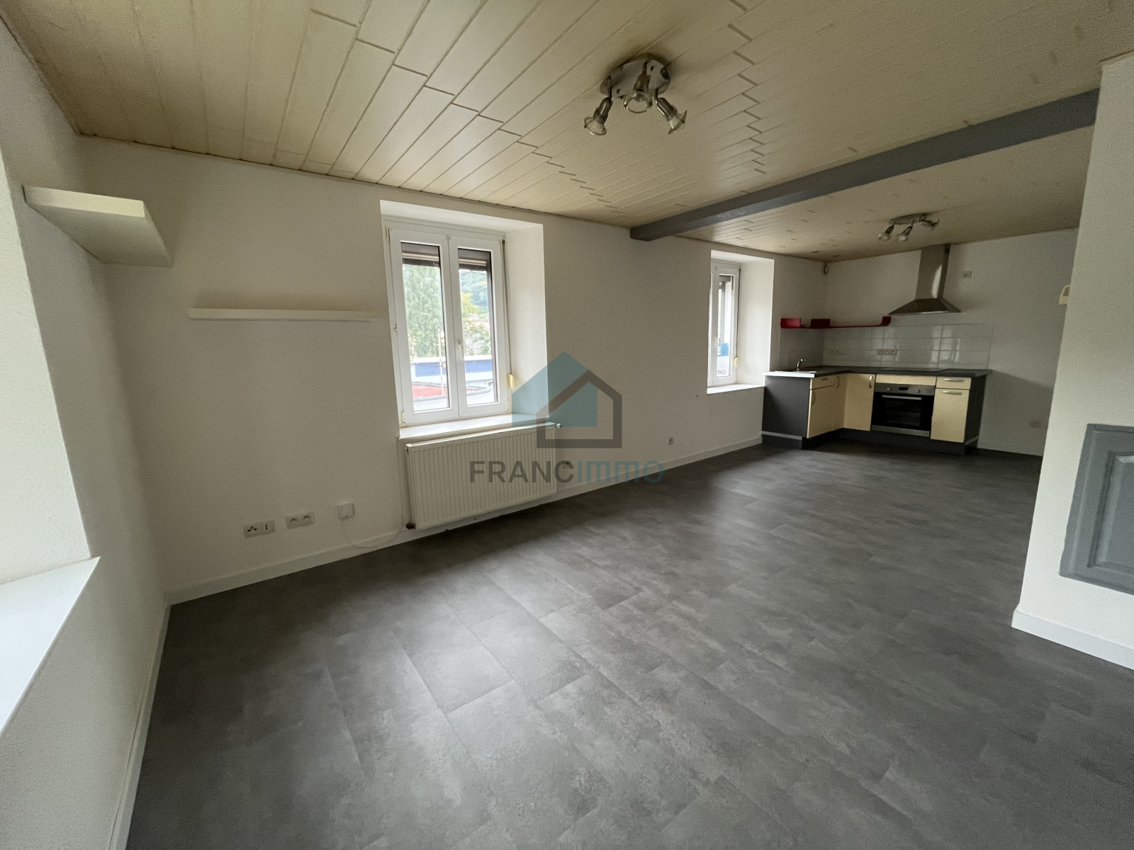 Appartement au 2ème étage comprenant une entrée avec dégagement , un réduit, une salle d'eau, un salon-séjour ouvert sur une cuisine aménagée, une grande chambre. Cave individuelle.