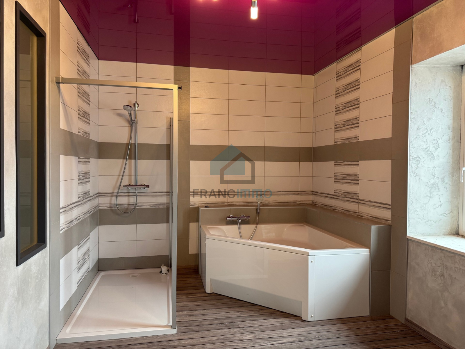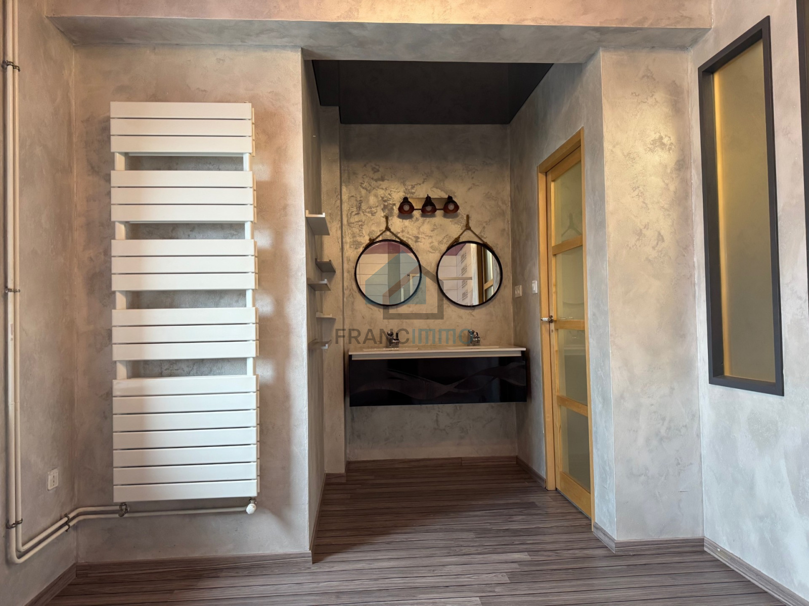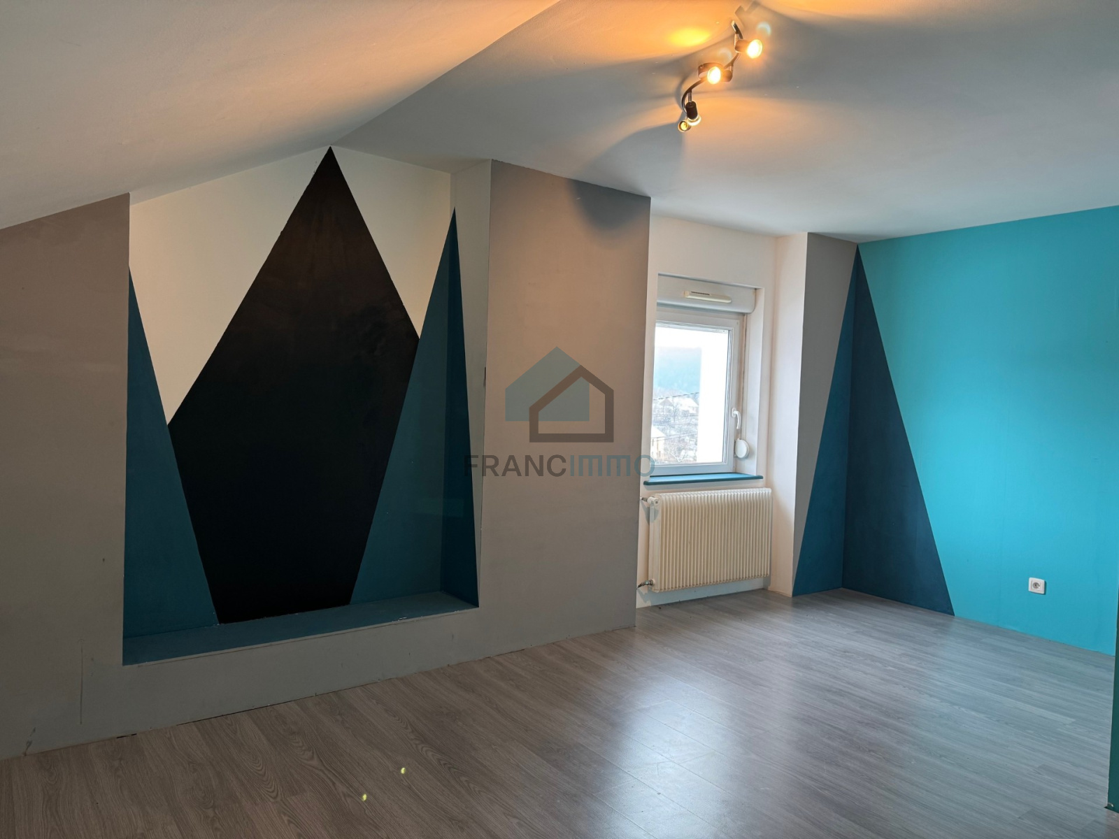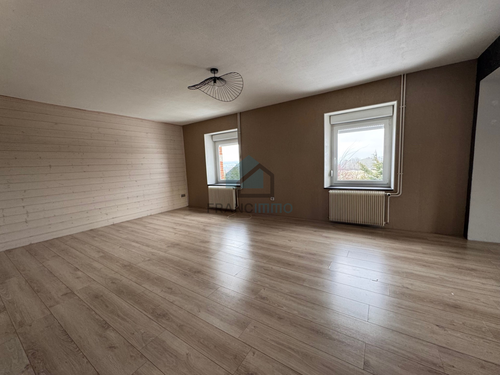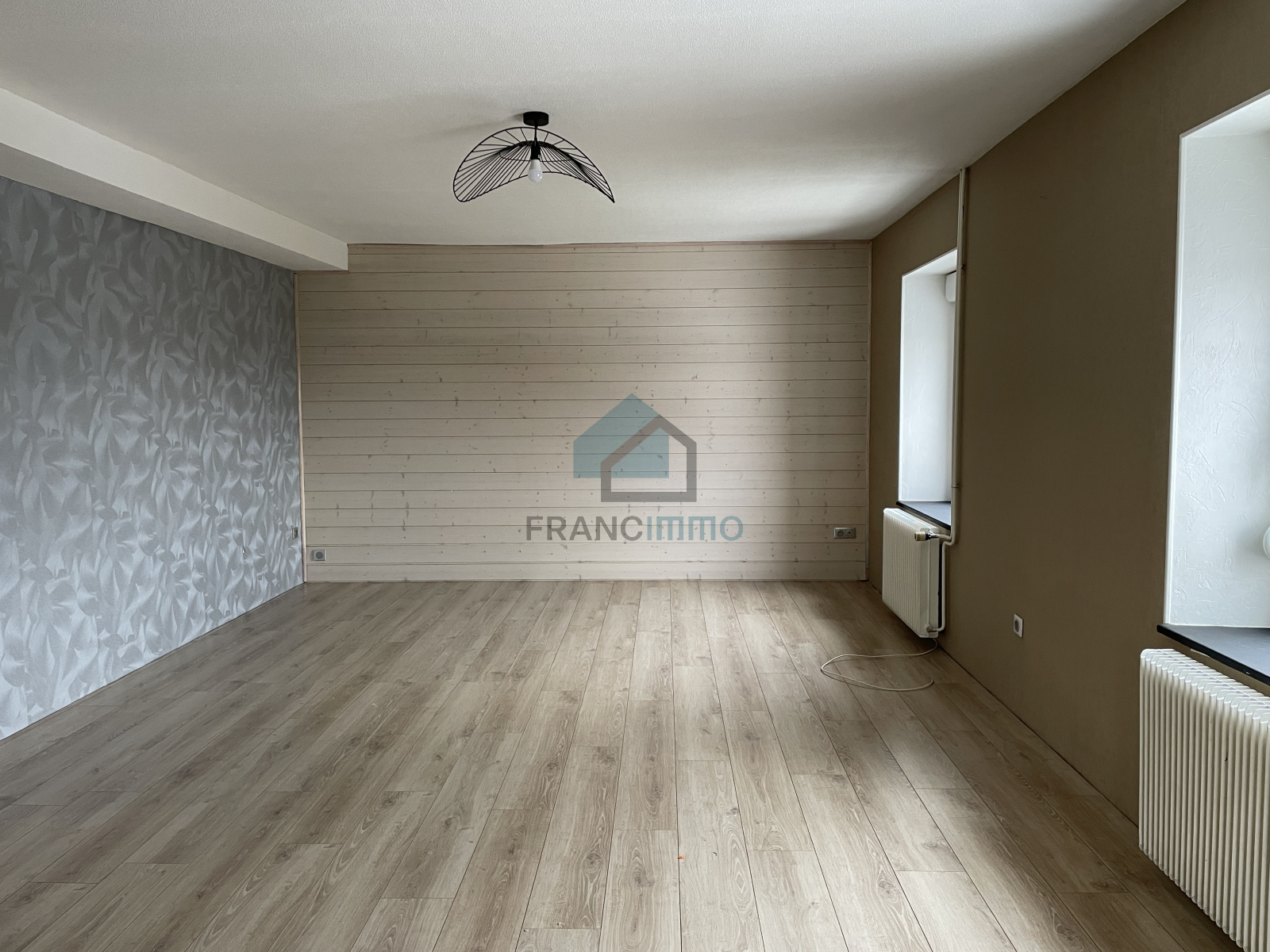 GRAND APPARTEMENT F4 au 1er étage, comprenant : entrée individuelle, cuisine équipée ouverte sur grand salon-séjour et donnant sur balcon. Buanderie, 3 chambres, dressing, salle de bains, WC, dégagement avec rangement et grenier. Grand garage. Terrasse privative.