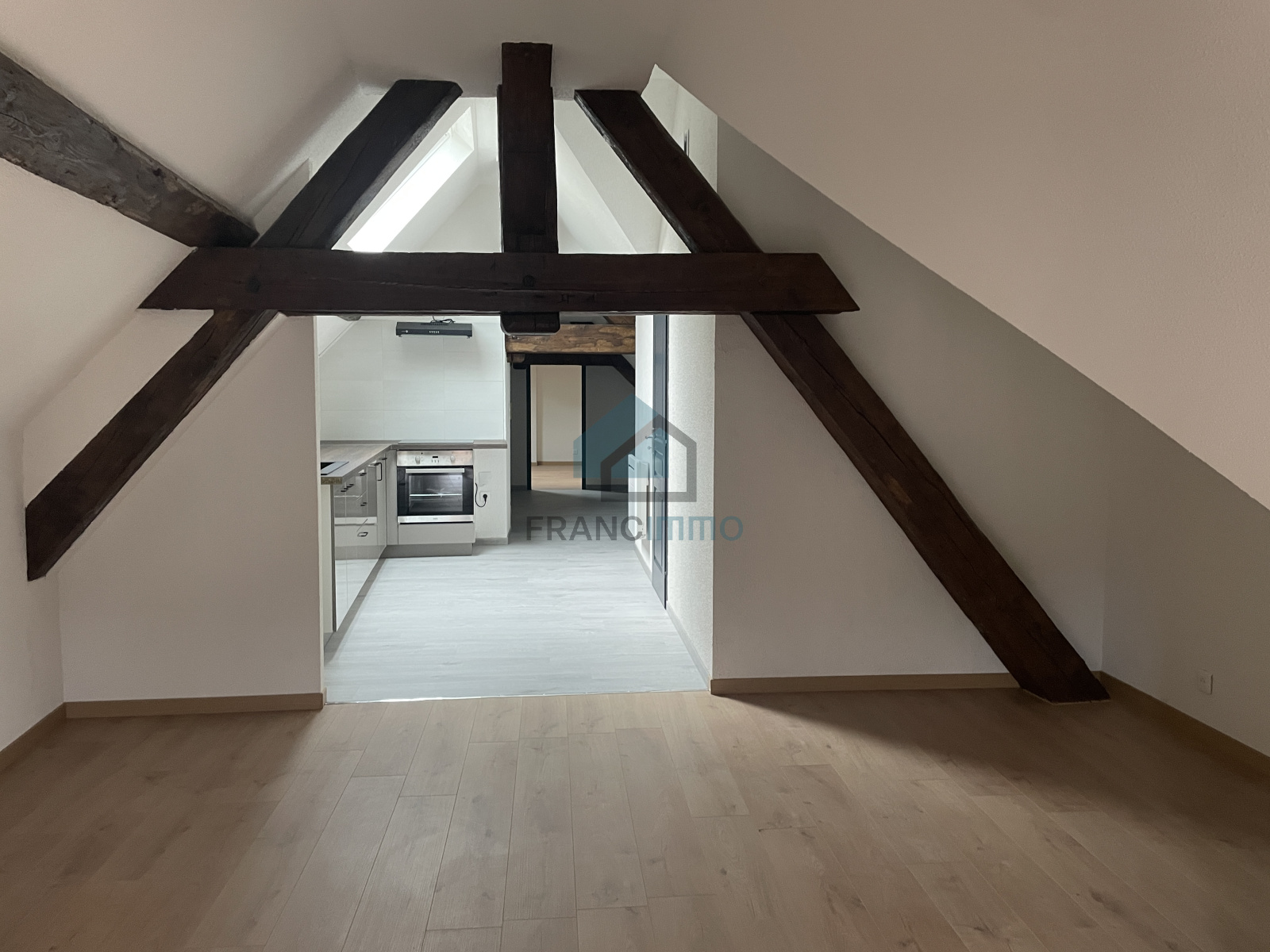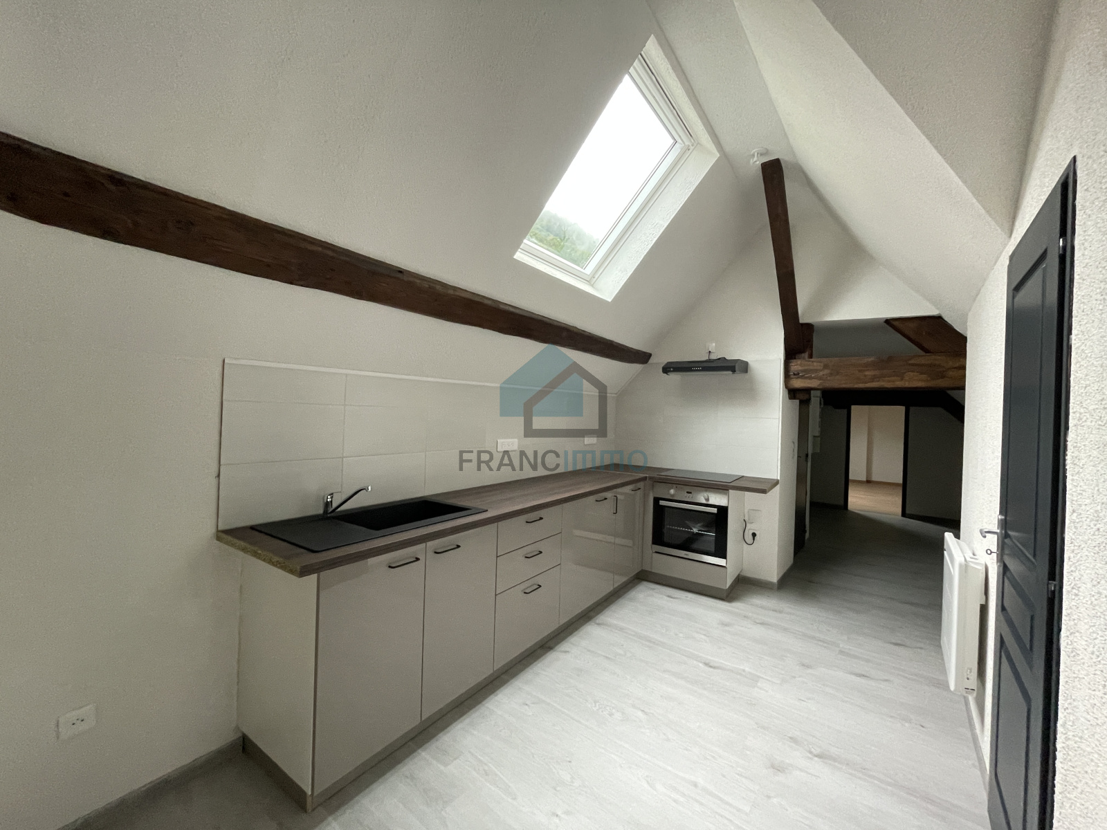 APPARTEMENT mansardé comprenant entrée, cuisine aménagée, salon, une chambres, salle d'eau avec WC. Cave.