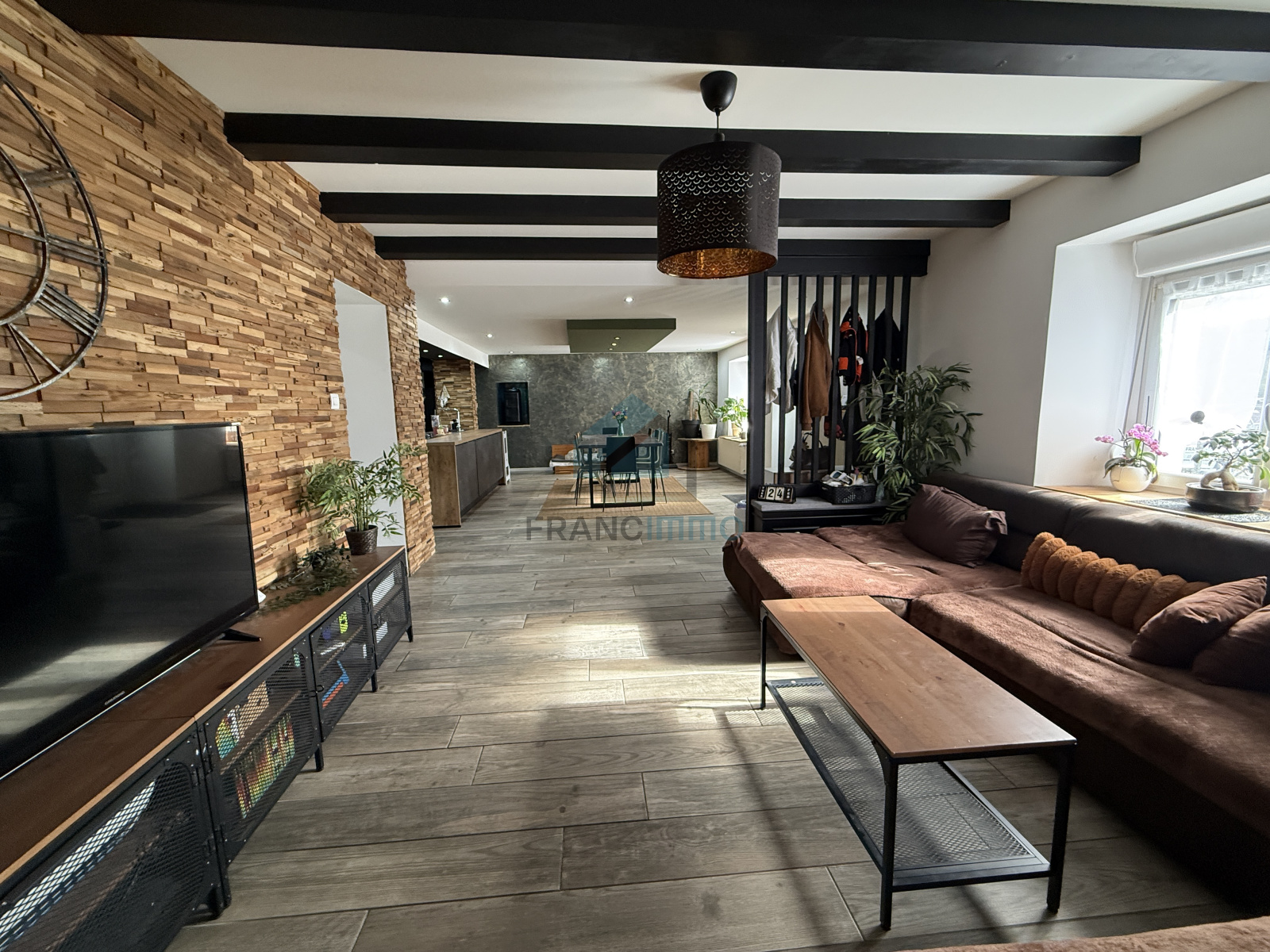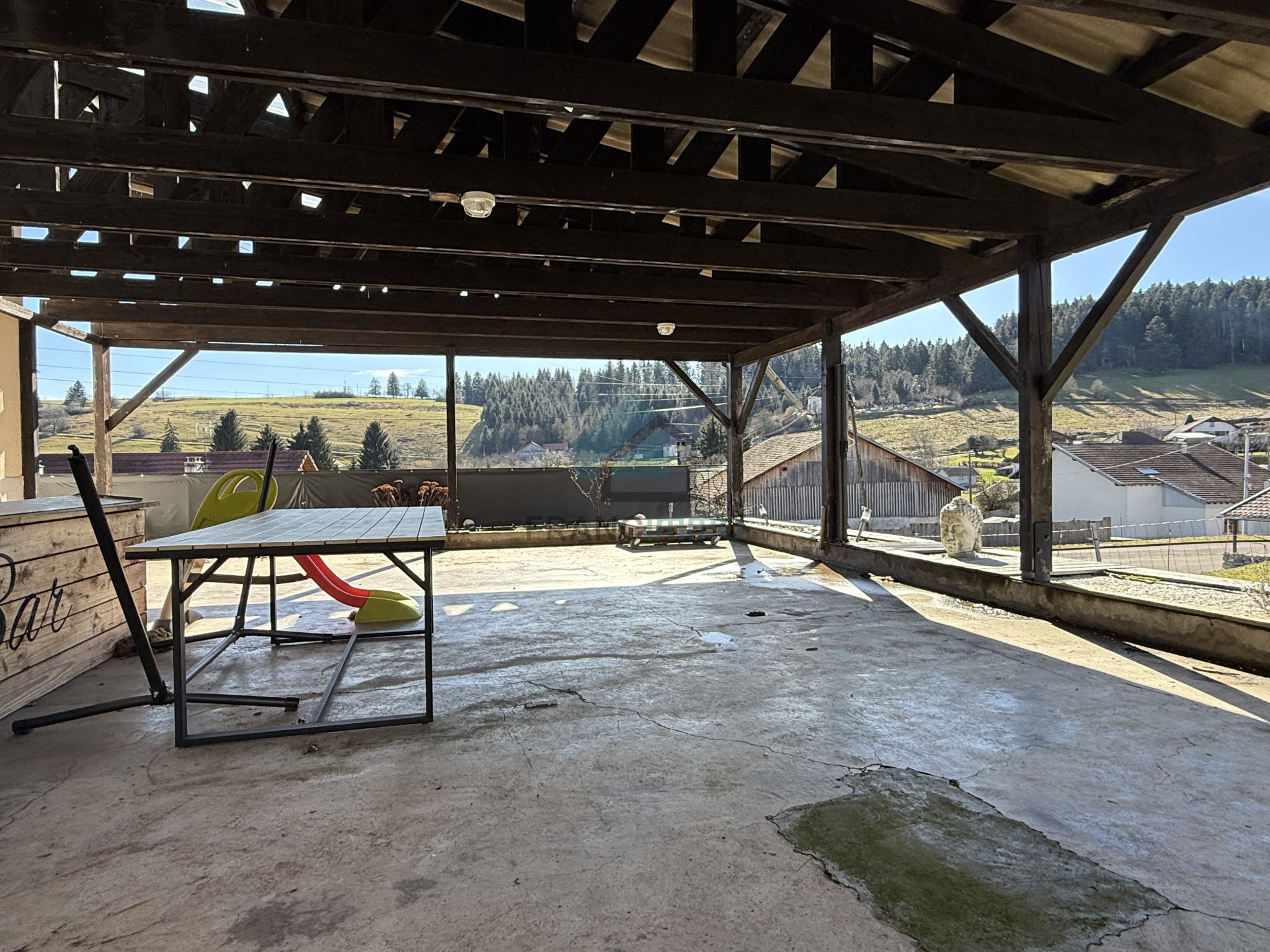 L'Agence Francimmo vous propose de découvrir en exclusivité cette magnifique maison spacieuse comprenant : cuisine équipée ouverte sur salon séjour, une pièce de détente, coin buanderie, une chambre, WC, salle de bains, un espace jaccuzi, atelier, chaufferie et cave. A l'étage, couloir, WC, 3 jolies chambres dont une avec salle de bains et grange. La maison dispose d'un appartement d'environ 80m² avec entrée indépendante, à rénover entièrement, ce qui laisse la possibilité d'agrandir la surface habitable de la maison ou de le louer pour avoir un revenu locatif. Grande terrasse couverte accolée à la maison avec une jolie vue, spacieux garage sur deux niveaux, d'environ 130m² avec fumoir en annexe. Rare sur le secteur, contactez-nous pour venir la visiter. Les informations sur les risques auxquels ce bien est exposé sont disponibles sur le site Géorisques.