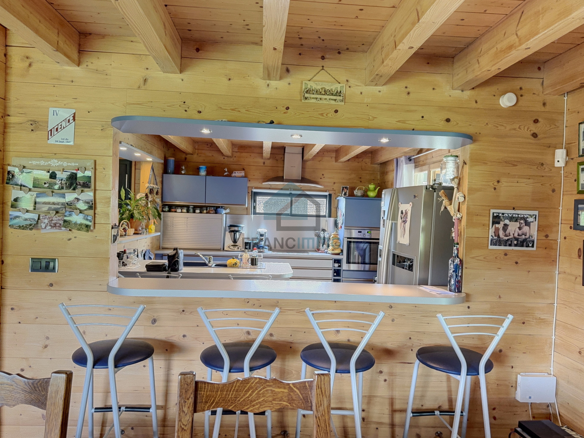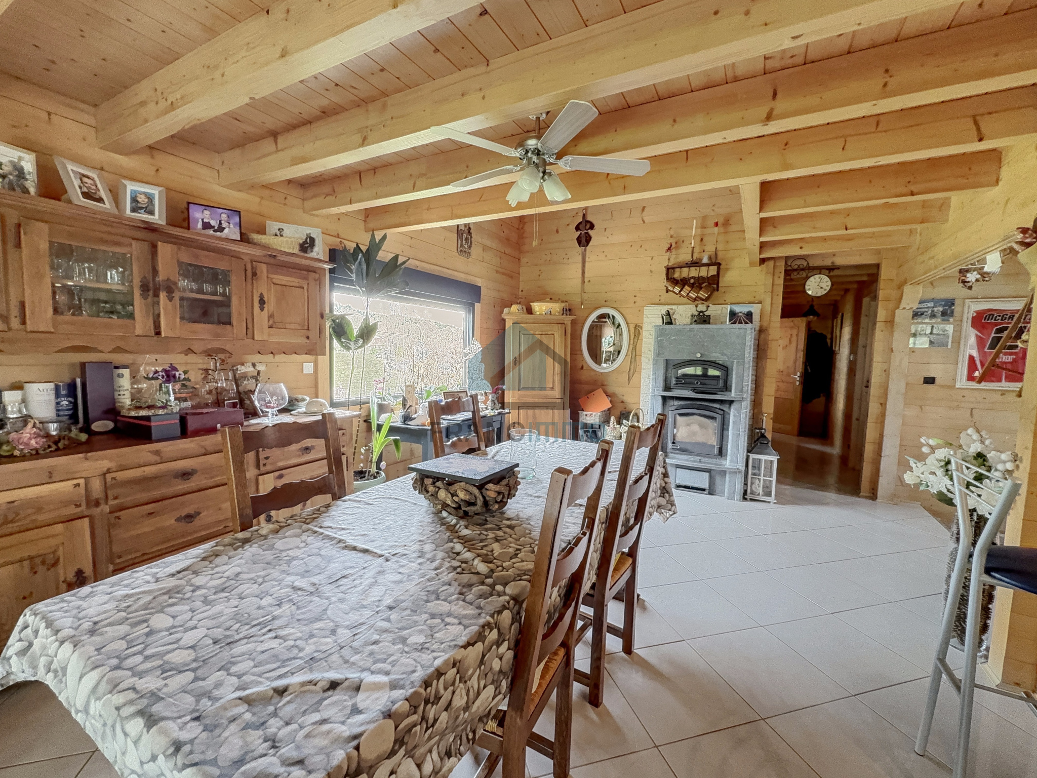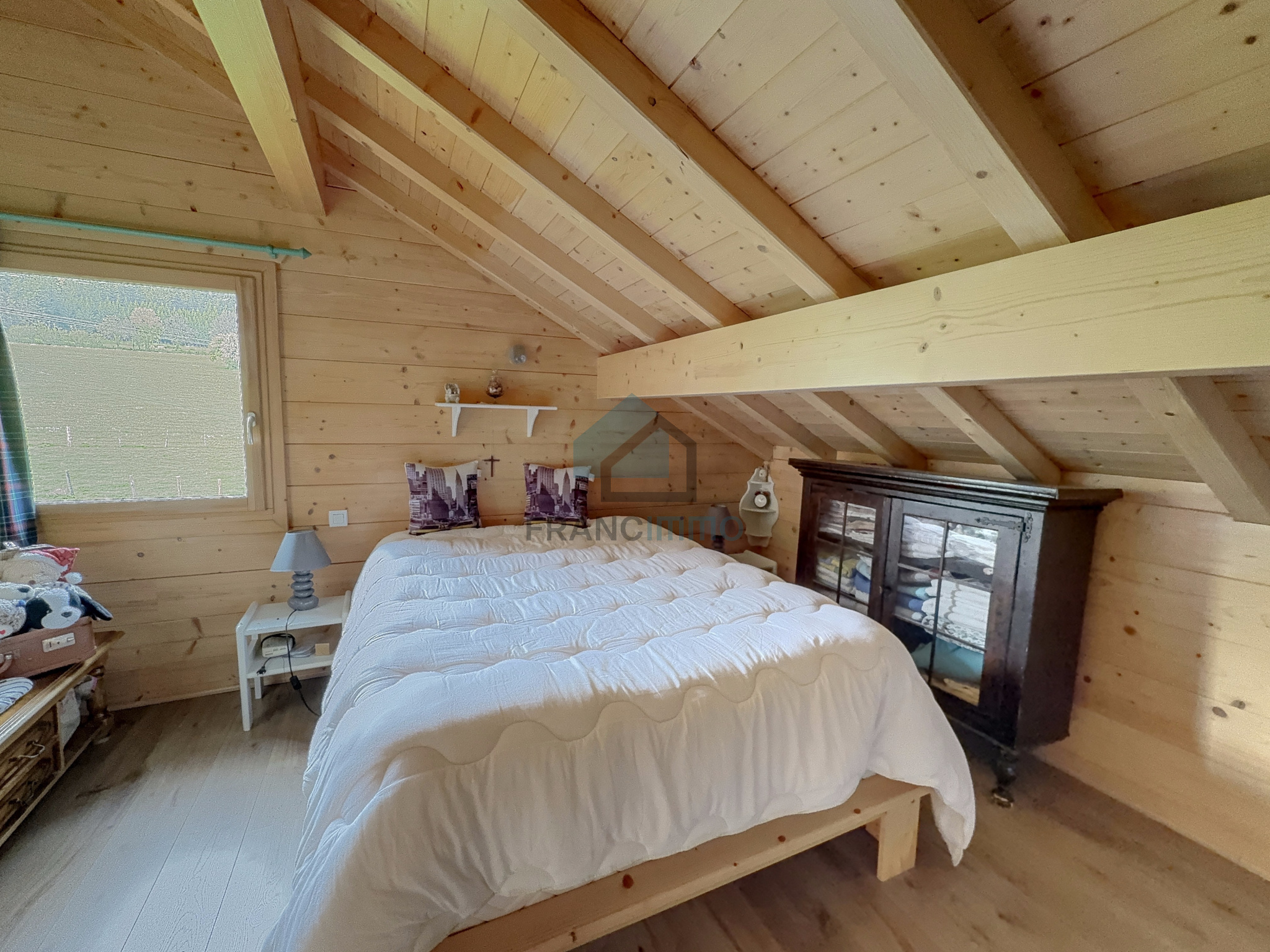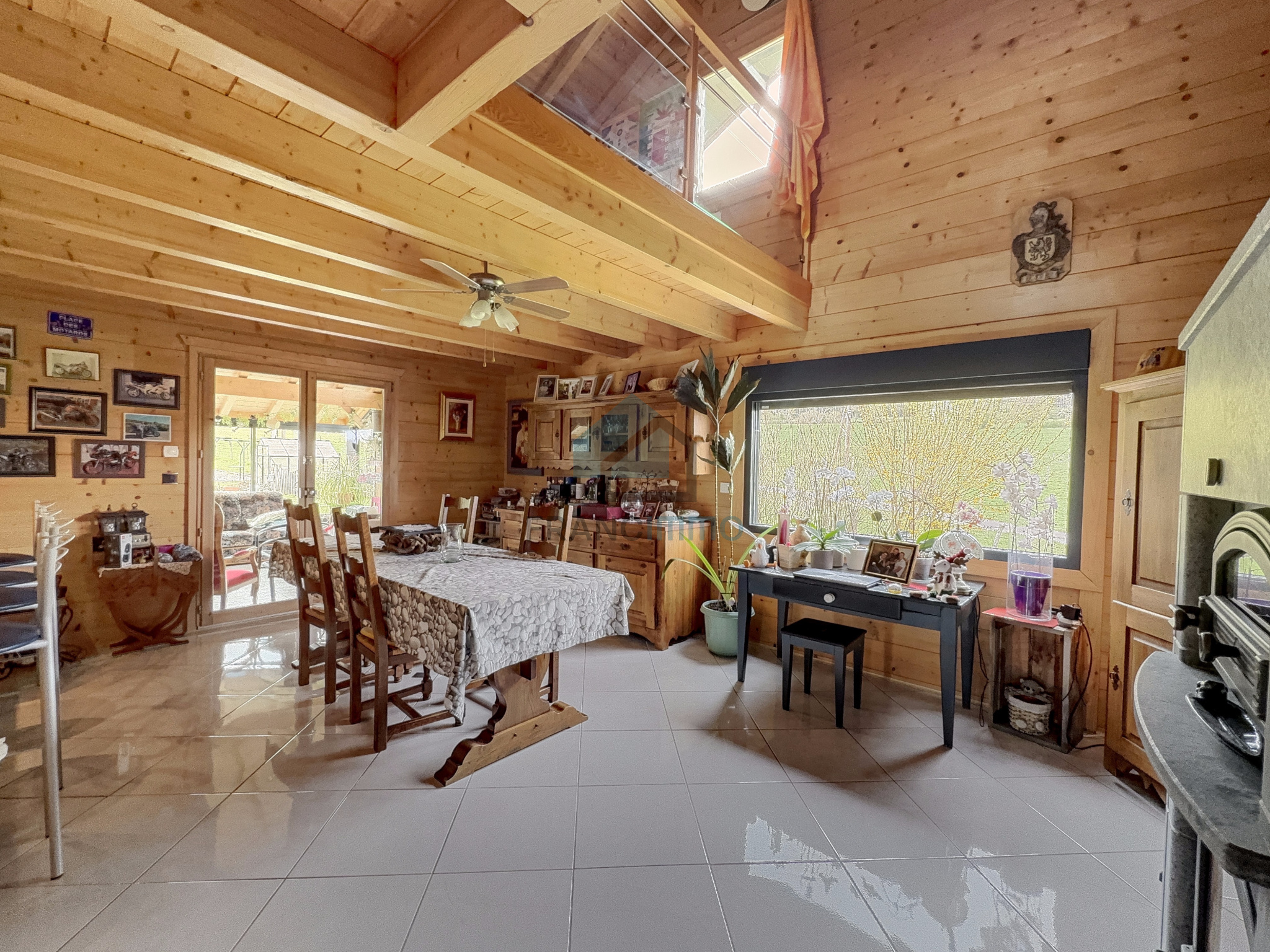 L'Agence Francimmo vous propose de découvrir en exclusivité ce chalet très bien entretenu comprenant : entrée, cuisine équipée, véranda, salle à manger avec poêle à bois, couloir, salle de bains avec douche et baignoire, WC et une chambre. A l'étage, mezzanine avec bureau, salon et 2 chambres. La maison dispose d'un sous-sol avec garage, buanderie, WC et cave. Grand garage en annexe. Vous serez séduits par le terrain arboré de 2062m² avec pergola. Coup de coeur assuré pour cette maison chaleureuse et avec une jolie vue, dans laquelle vous n'aurez plus qu'à poser vos valises. Contactez-nous pour plus d'informations ou pour venir visiter. Les risques auxquels ce bien est exposé sont disponibles sur le site Géorisques.