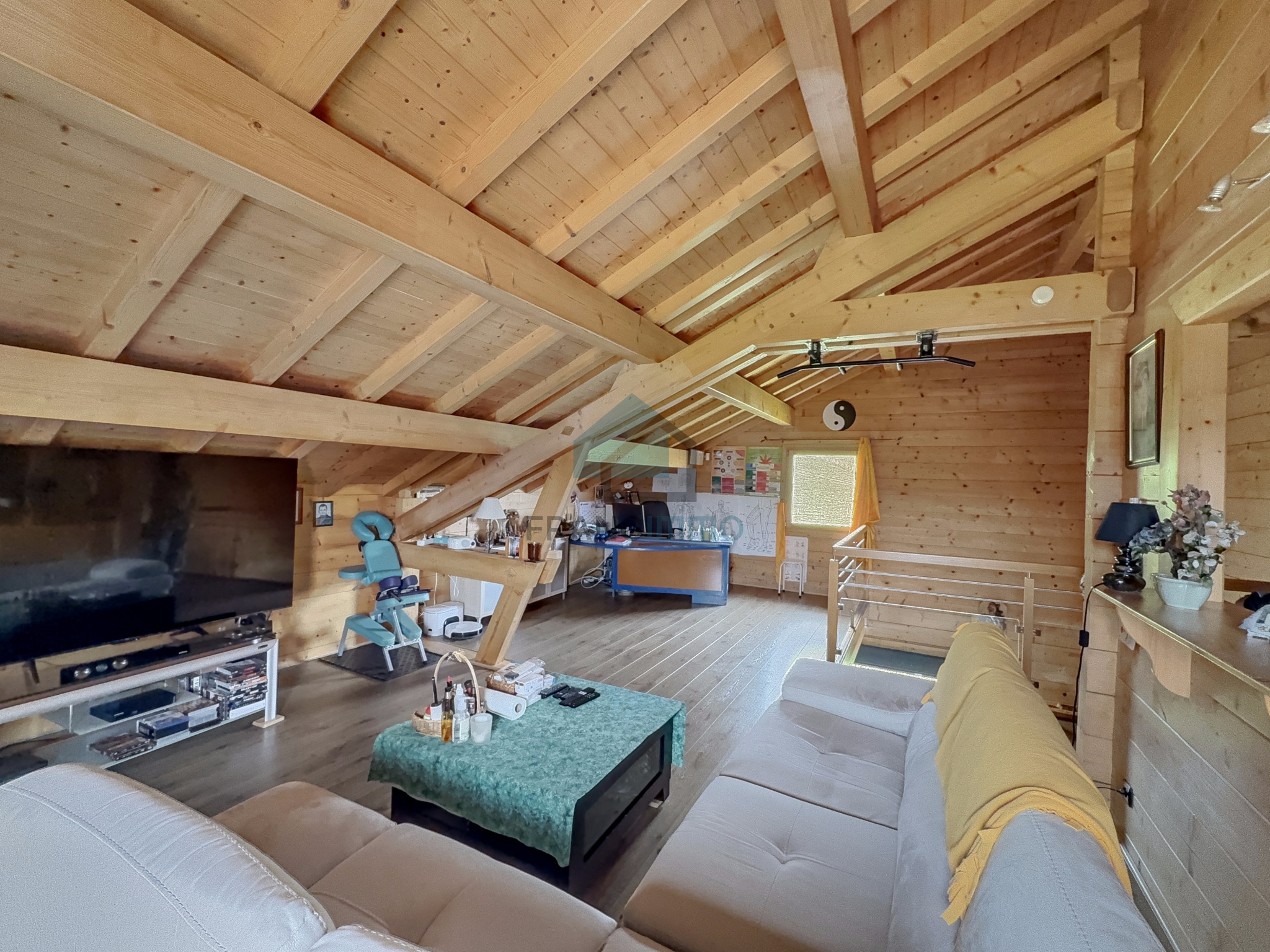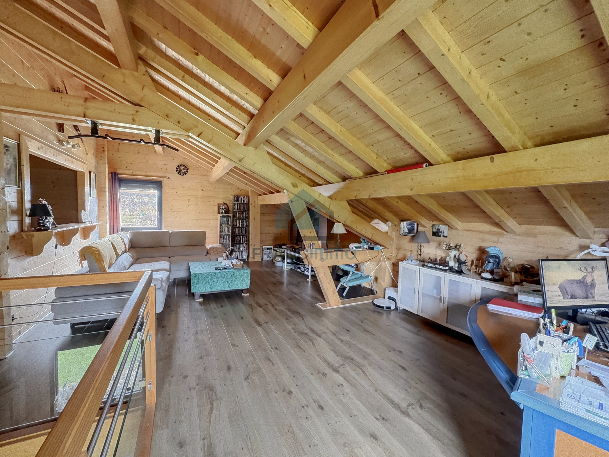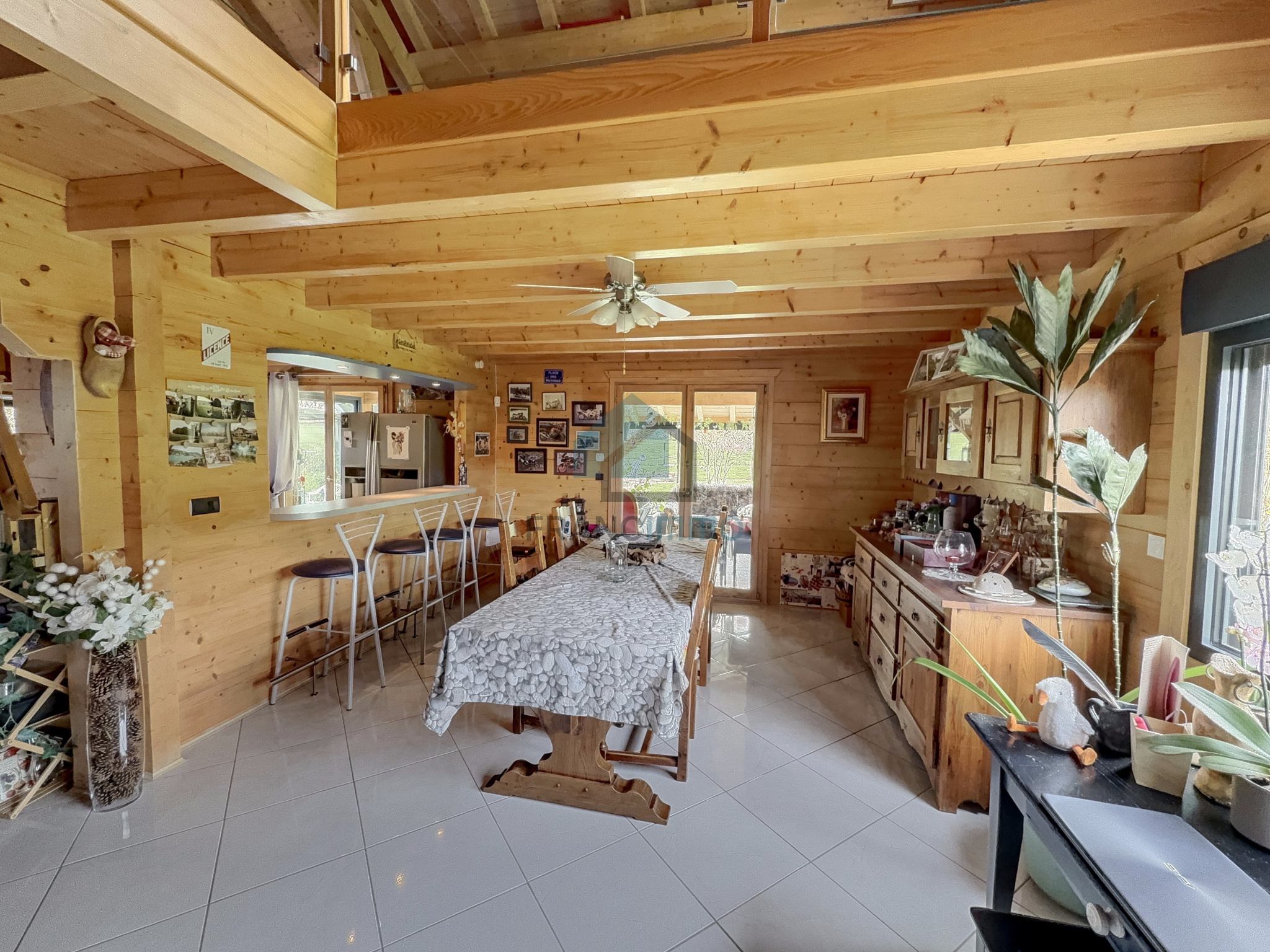 L'Agence Francimmo vous propose de découvrir en exclusivité ce chalet très bien entretenu comprenant : entrée, cuisine équipée, véranda, salle à manger avec poêle à bois, couloir, salle de bains avec douche et baignoire, WC et une chambre. A l'étage, mezzanine avec bureau, salon et 2 chambres. La maison dispose d'un sous-sol avec garage, buanderie, WC et cave. Grand garage en annexe. Vous serez séduits par le terrain arboré de 2062m² avec pergola. Coup de coeur assuré pour cette maison chaleureuse et avec une jolie vue, dans laquelle vous n'aurez plus qu'à poser vos valises. Contactez-nous pour plus d'informations ou pour venir visiter. Les risques auxquels ce bien est exposé sont disponibles sur le site Géorisques.