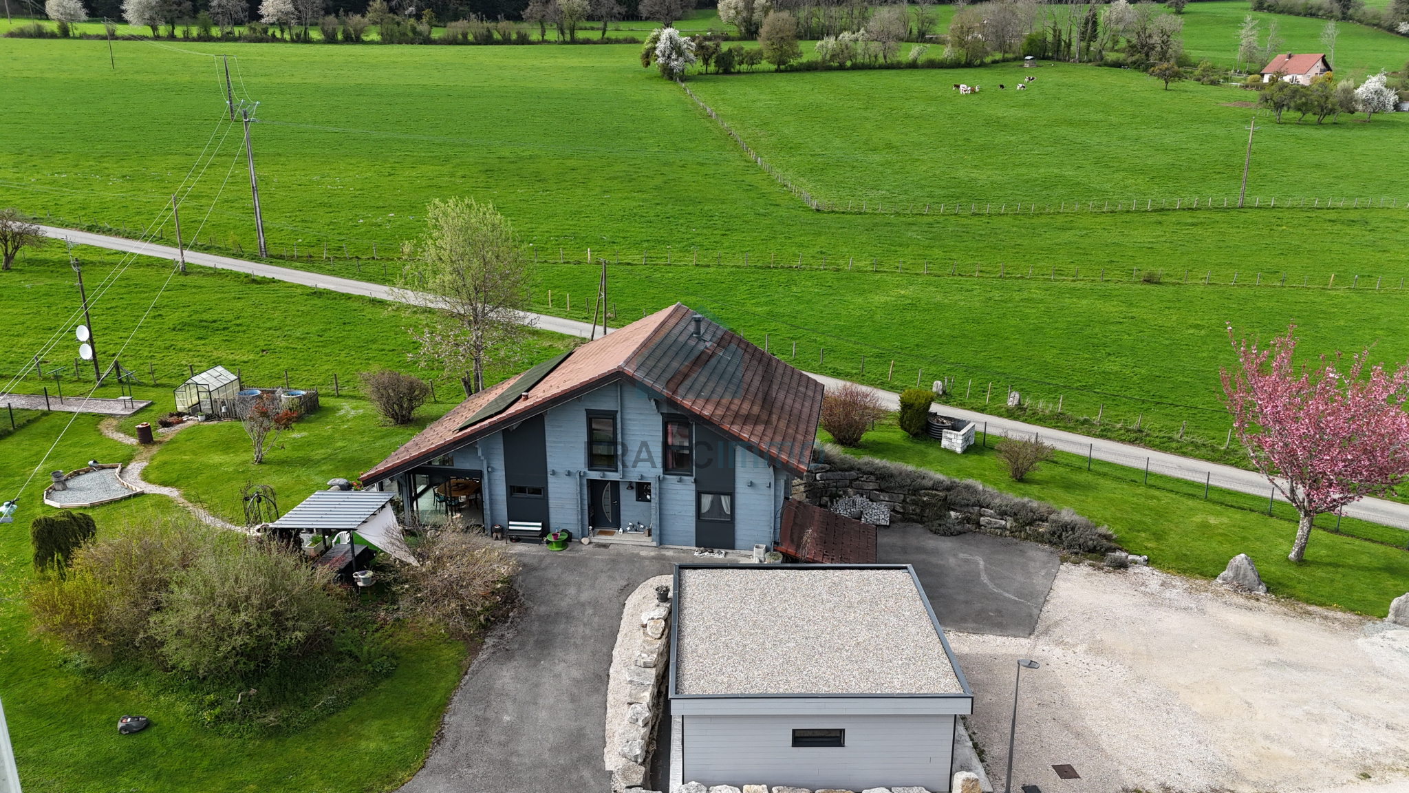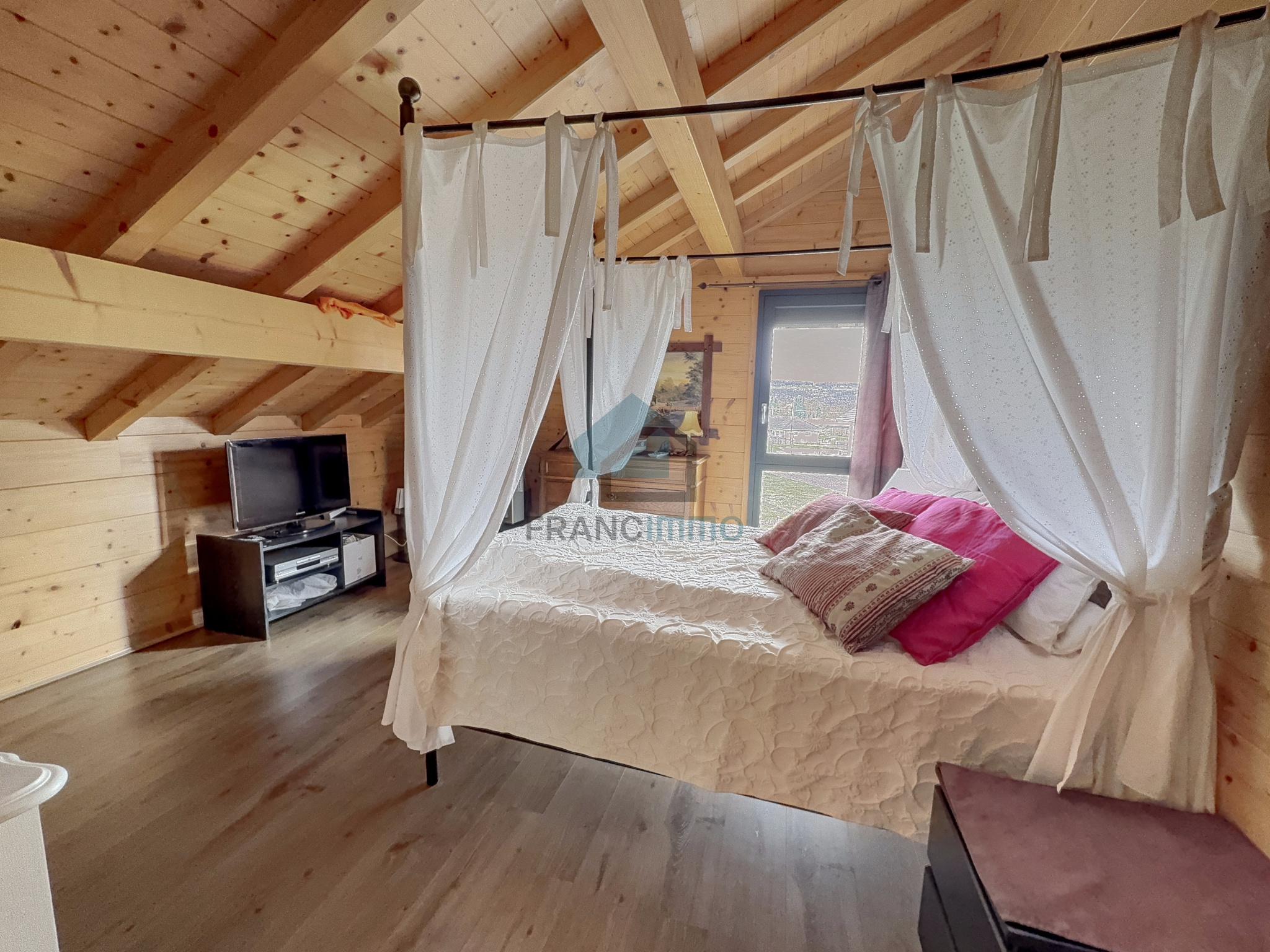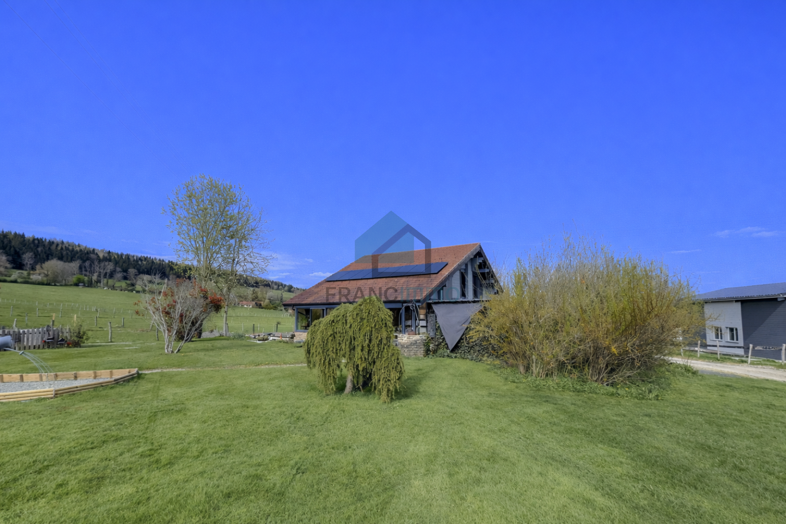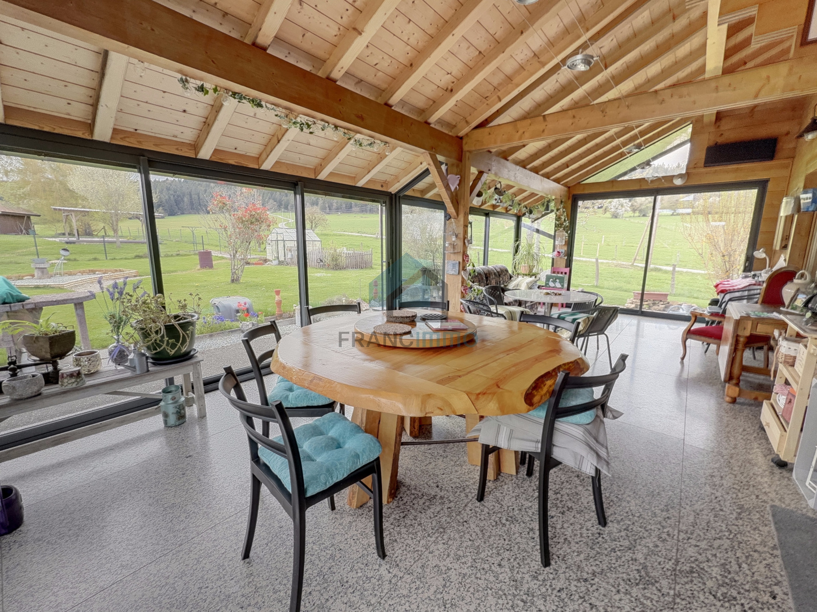 L'Agence Francimmo vous propose de découvrir en exclusivité ce chalet très bien entretenu comprenant : entrée, cuisine équipée, véranda, salle à manger avec poêle à bois, couloir, salle de bains avec douche et baignoire, WC et une chambre. A l'étage, mezzanine avec bureau, salon et 2 chambres. La maison dispose d'un sous-sol avec garage, buanderie, WC et cave. Grand garage en annexe. Vous serez séduits par le terrain arboré de 2062m² avec pergola. Coup de coeur assuré pour cette maison chaleureuse et avec une jolie vue, dans laquelle vous n'aurez plus qu'à poser vos valises. Contactez-nous pour plus d'informations ou pour venir visiter. Les risques auxquels ce bien est exposé sont disponibles sur le site Géorisques.