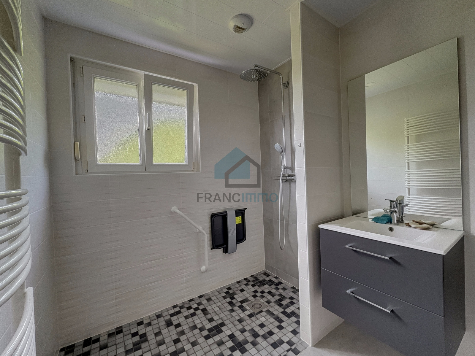 douche italienne, meuble avec lavabo, WC