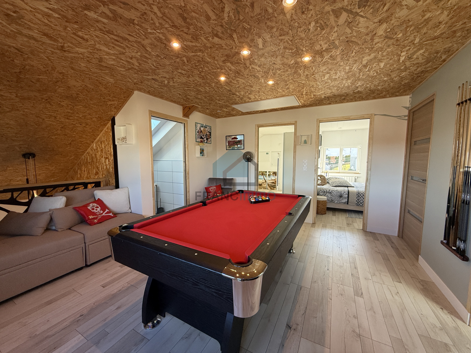 Au deuxième étage, un espace billard, 2 chambres, un WC, une salle de bain, grenier.