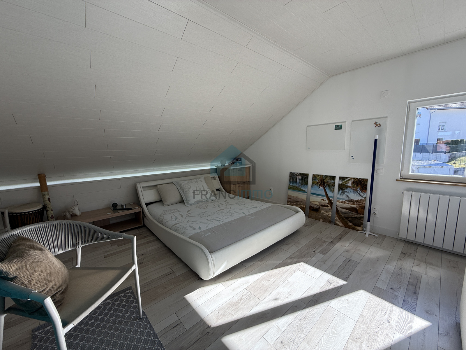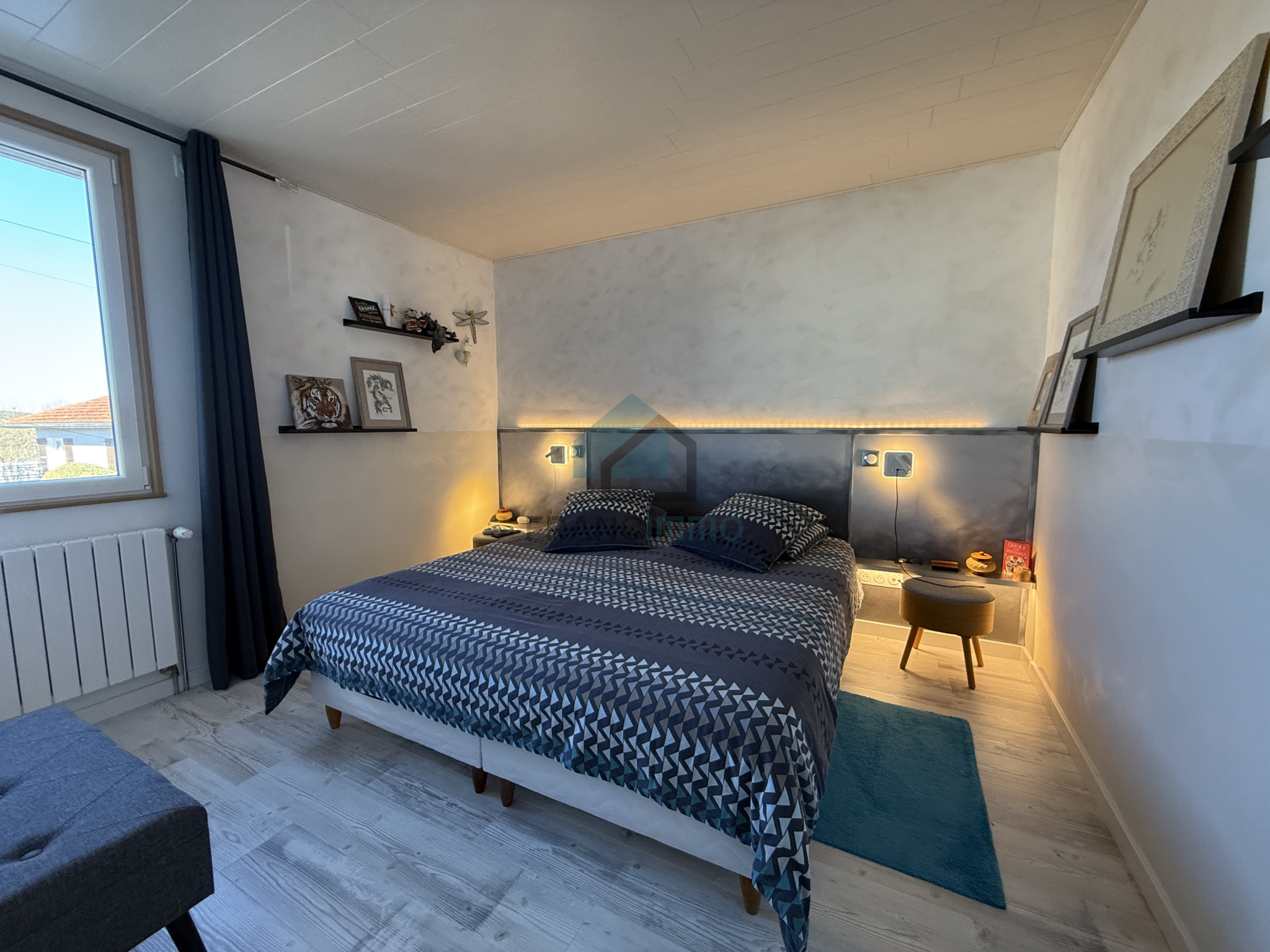 Le thermostat d'ambiance est dans la chambre Volets domotisés dans toute la maison. Prises télé et prise réseau dans chaque chambres et pièces.